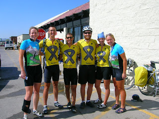 Great Divide Race. Anyone who knows about this race knows how intense it is. Alex was hoping to finish the race in about 20 days. He was hoping to average about 130 miles a day. 130 miles a day! Off road! For Janice and I, who average around 60 miles a day (on the road), this seemed to be a truly herculean feat. Our trip was a vacation compared to what Alex and the other racers were doing. No rest days for Alex. And no support vehicles or team mechanics. Alex had to carry everything he needed. We couldn't believe it when Alex told us that he only gets about 5 hours of sleep a night. We took this photo outside the small store where Alex was stocking up on food and drinks.