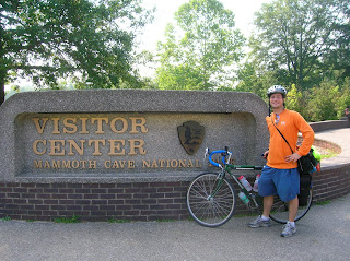 Mammoth Cave National Park, home of the world's longest cave system. I arrived in the evening and found the campground. I paid $17.00 for a site (no hiker/biker rates at this campground) and set up my tent. The ground was hard and I borrowed a hammer from my camp neighbors, Eric and Kay, who were from Pennsylvania. While returning the hammer, Eric asked me if I wanted some Chili. I said yes. And that began my two night friendship with Eric and Kay. That night we talked about cave tours. Eric and Kay had already been on a couple tours and I was planning on going on a tour in the morning. You see, the only way for the public to see the cave is to go on a tour.