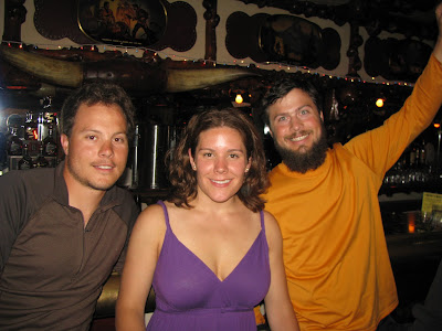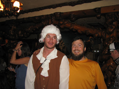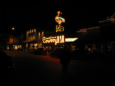 After the pyrotechnic activities, we went downtown to the Cowboy. There was live music, dancing, cold beer, and lots of western wear. The bar stools were actually leather horse saddles. There were stuffed animals in cases. Rows of spurs. Shiny belt buckles. And a guy named William dressed up and wearing a wig.